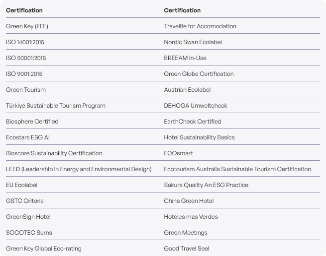 - Start with globally recognized standards for hotels and tour operators (i.e. GSTC recognized or Travalyst recognized) so that your sustainable hotel certification portfolio rests on widely accepted criteria.